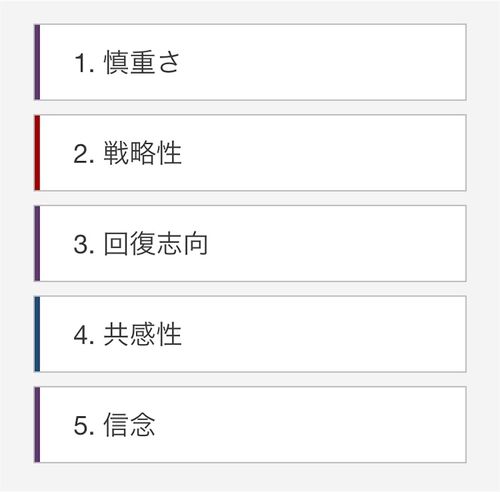 毎年恒例の、ストレングスファインダーを実施 2年前の最初は 慎重さ 個別化 最上志向 自我 学習欲 1年前は 慎重さ 親密性 公平性 未来志向 共感性 今年は 何をほんとものするかはわからないが 慎重に生きることに関してはやはり群を抜いて変わらない。共感性…